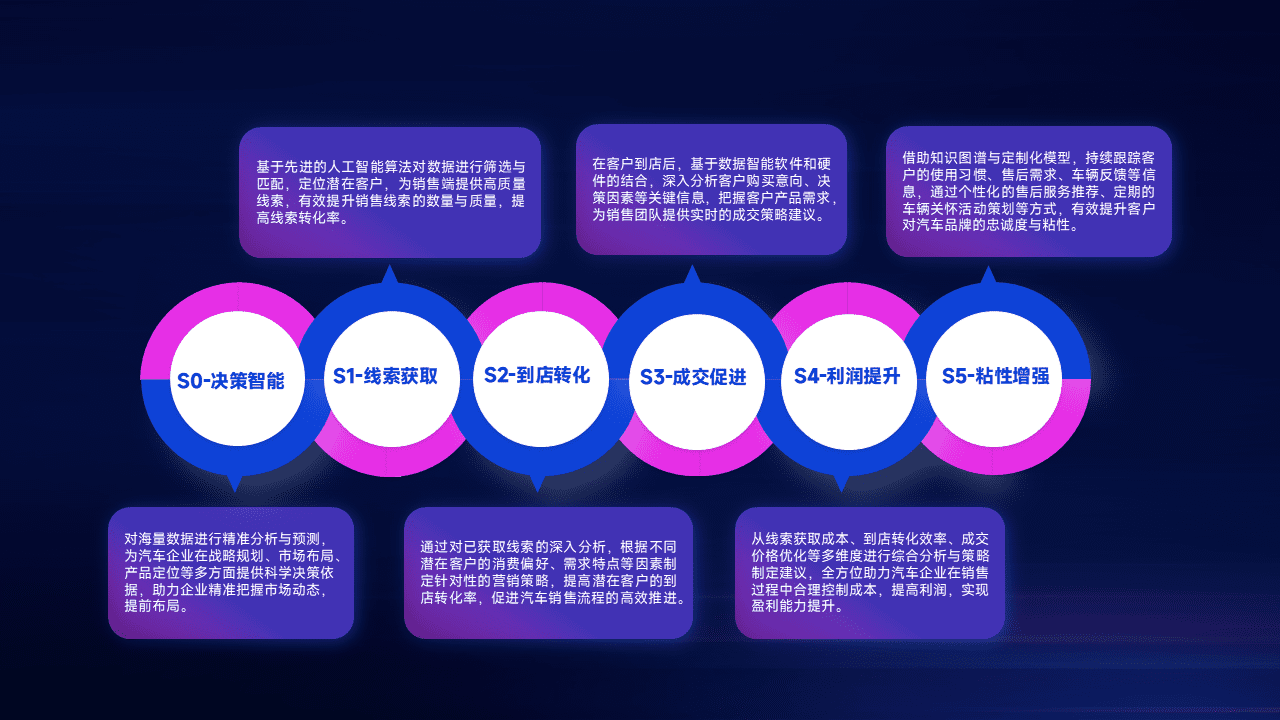 通过拓宽潜在客户来源、、优化线索分配并提高到店转化率,,以增强销售效率。。。。同时,,利用线索数据不断优化分析模型,,,有效提升转化率,,,扩大营销影响力。。。。